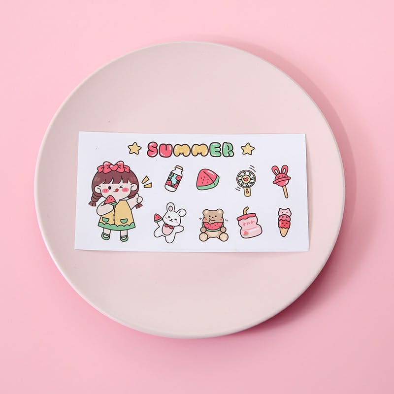 STIKER MOTIF KOREAN GIRL LUCU AESTHETIC | STICKER BOTOL HP GELAS BUKU | STATIONERY LUCU STIKER LUCU KEKINIAN STICKER CATATAN