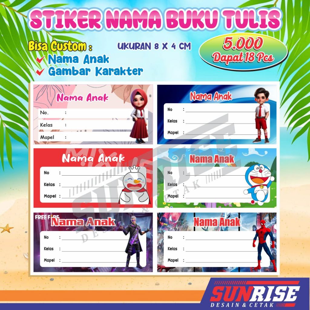 STIKER NAMA BUKU dapat 18 stiker
