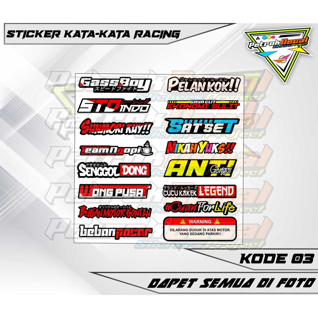 STIKER PACK KATA KATA / STIKER RACING / STICKER HOLOGRAM/ STIKER HITZ / STIKER KEKINIAN / STIKER MOTOR