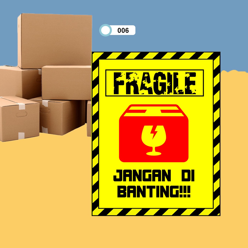 STIKER PAKET ONLINE SHOP PECAH BELAH VERTIKAL / STICKER FRAGILE BOX PAKET PENGIRIMAN / STIKER PERINGATAN LABEL PAKET AWAS PECAH