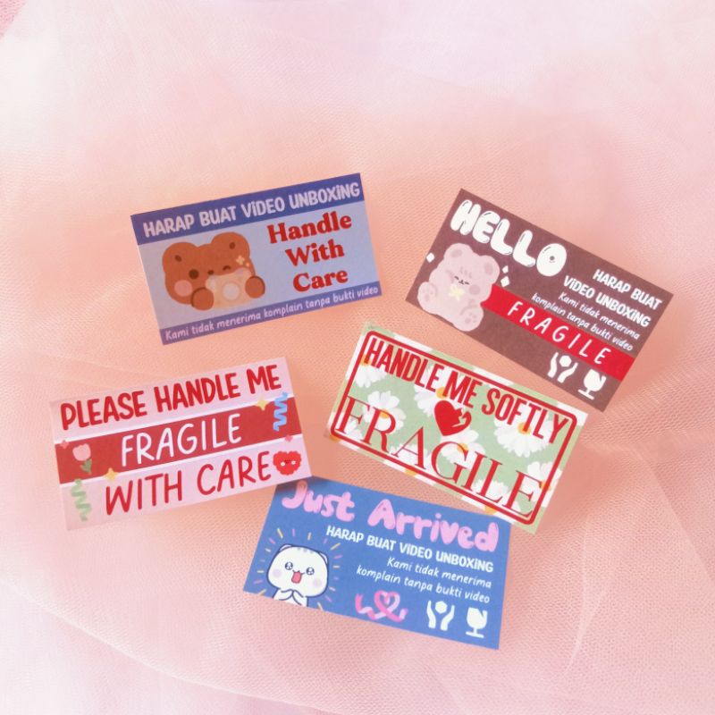 STIKER PAKET UNBOXING | FRAGILE | VIDEO UNBOXING | HANDLE CARE | STIKER PENGIRIMAN | AESTHETIC | CUTE | STICKER HATI-HATI | READY STOCK