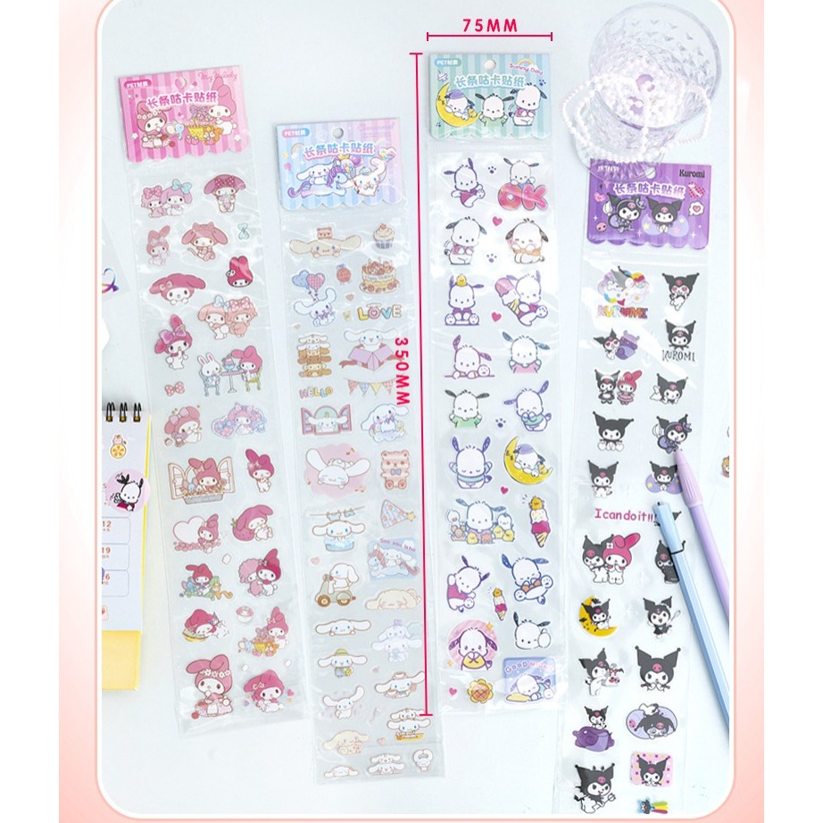 STIKER PANJANG 750 SANRIO | STIKER JURNALING | DIARY STICKER | STICKER GELAS BOTOL MINUM LUCU | KUROMI | MELODY | HELLO KITTY | STIKER PET | @banyak