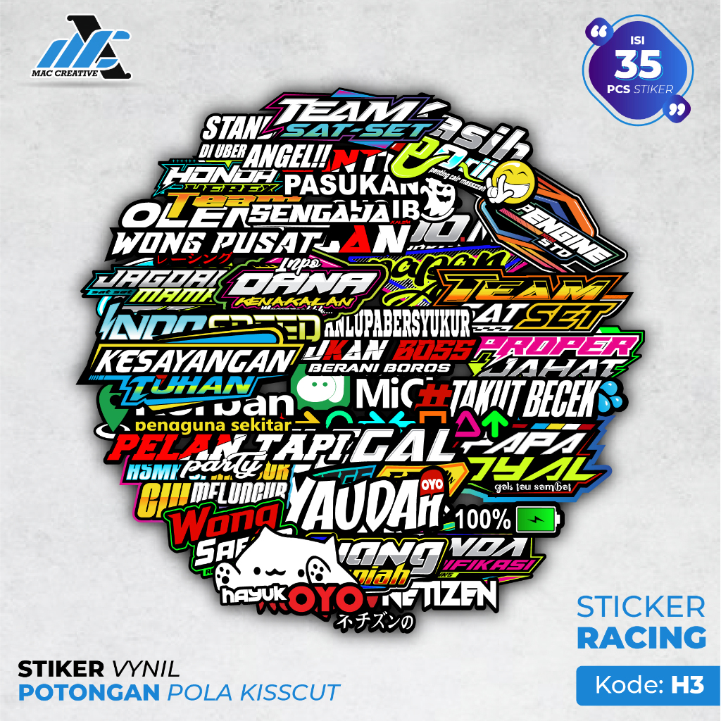 STIKER RANDOM AESTHETIC, RACING, DECORATIVE DLL. STIKER LAPTOP HELM MOTOR HAPE CASE KOPER TAS