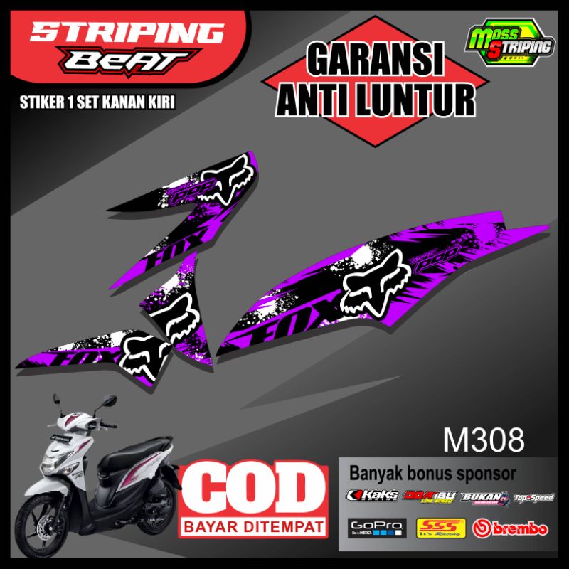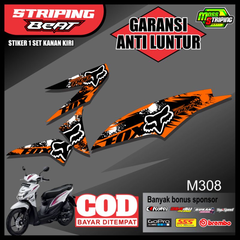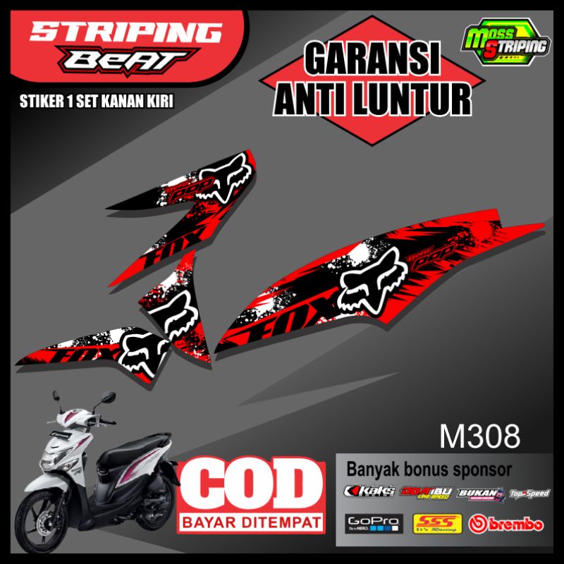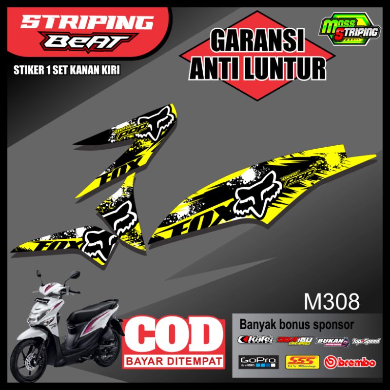 STIKER STRIPING BEAT POP DESIGN MOTIF FOX RACING - LIS VARIASI HONDA BEAT POP FREE STIKER SPONSOR BALAP