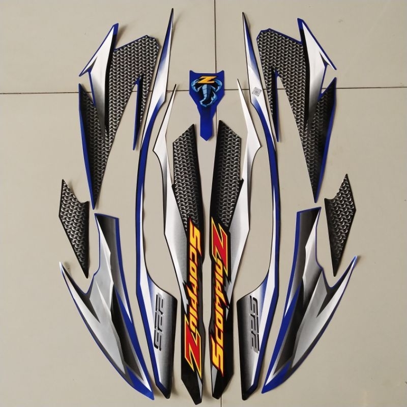 STIKER STRIPING LIS BODY YAMAHA SCORPIO Z 225 2007 BIRU HITAM