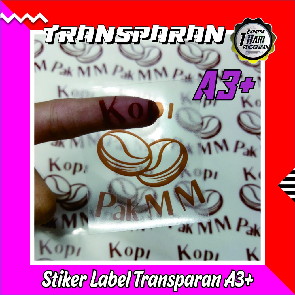 STIKER TRANSPARAN A3+ / STIKER LABEL KEMASAN / STIKER KEMASAN BOTOL MINUMAN / CUSTOM STIKER BEBAS UKURAN +FREE CUTTING