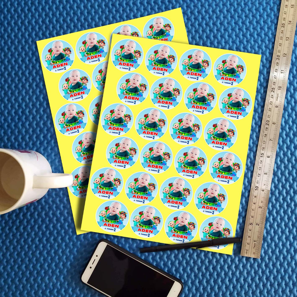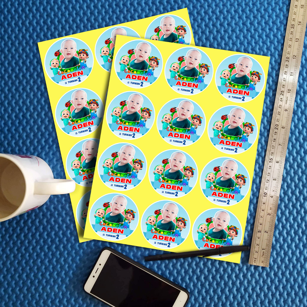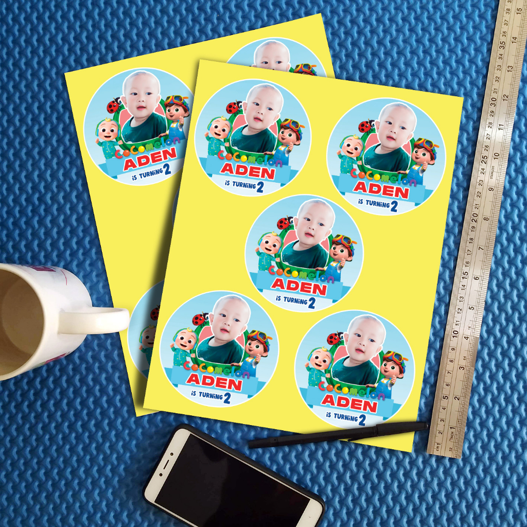 STIKER ULANG TAHUN ANAK COCOMELON PAKAI FOTO SENDIRI STICKER LABEL ULTAH LUCU KIDS BIRTHDAY
