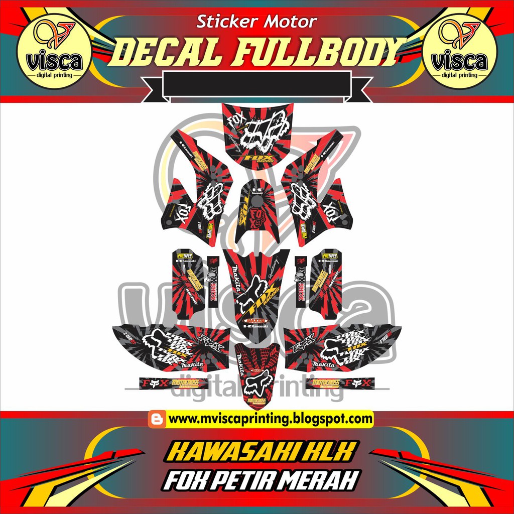 STIKER VARIASI MOTOR KLX DECAL STRIPING FULL BODY KAWASAKI KLX FOK PETIR MERAH