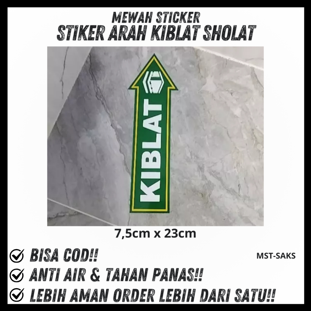 STIKER VINYL PETUNJUK ARAH KIBLAT ANAK PANAH LAMINASI GLOSSY