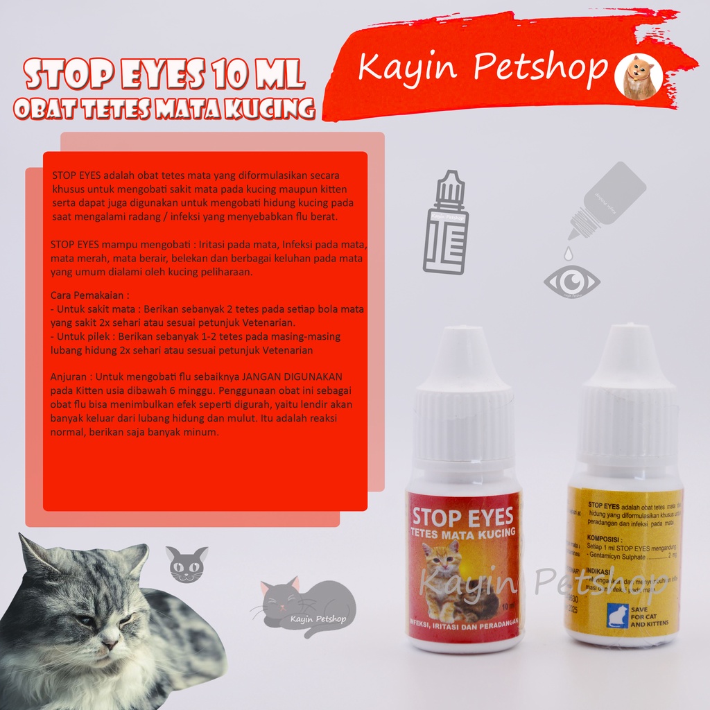 STOP EYES 10ml - Obat Tetes Mata Kucing (iritasi pada mata kucing - infeksi pada mata kucing - mata merah pada kucing - mata berair pada kucing - obat mata kucing bagus - obat mata kitten ampuh)