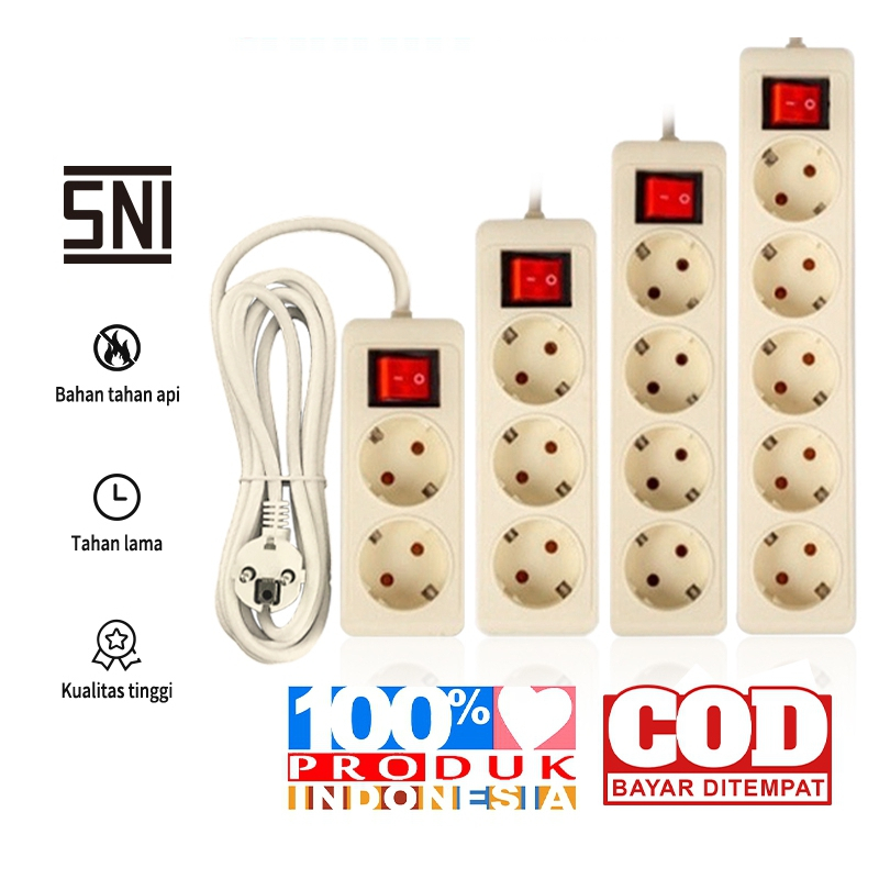 STOP KONTAK 3,4,5 LUBANG PANJANG 1,5M - 5M + KABEL / STOP KONTAK KABEL / Stop Kontak + Kabel 2/3/4/5 Lubang 1.5/3/5/10 Meter SNI