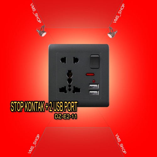 STOP KONTAK UNIVERSAL UK EU US 5 HOLE SOCKET WITH 2 USB PORT - BLACK