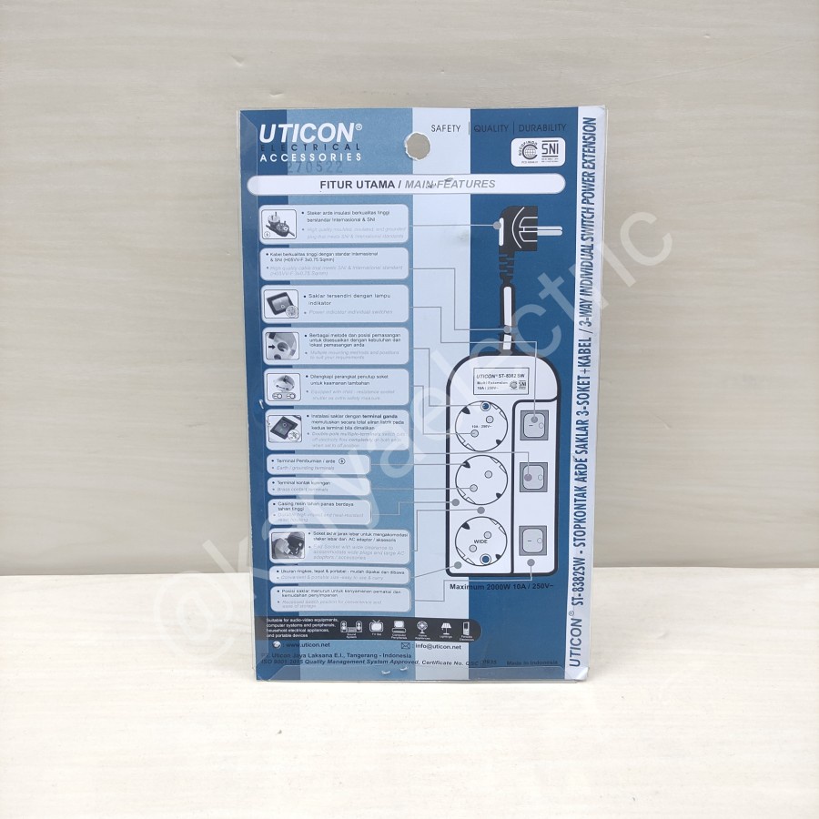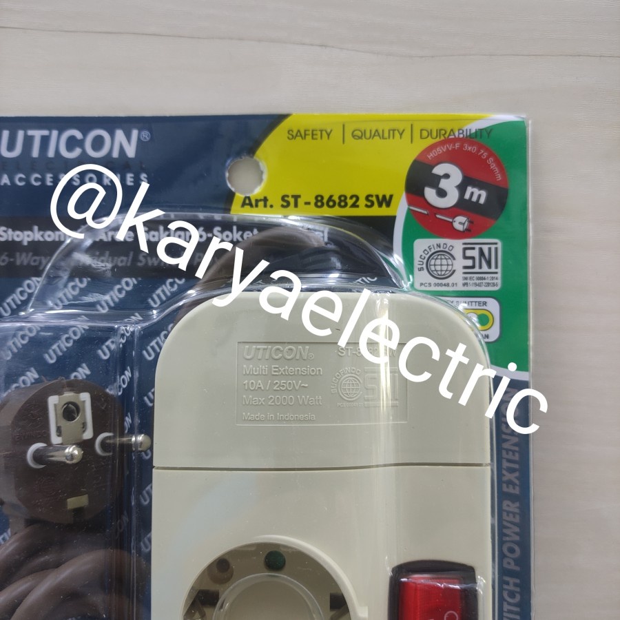 STOP KONTAK UTICON 3 LUBANG SAKLAR MASING" KABEL 3 METER UTICON ST-8382 SW