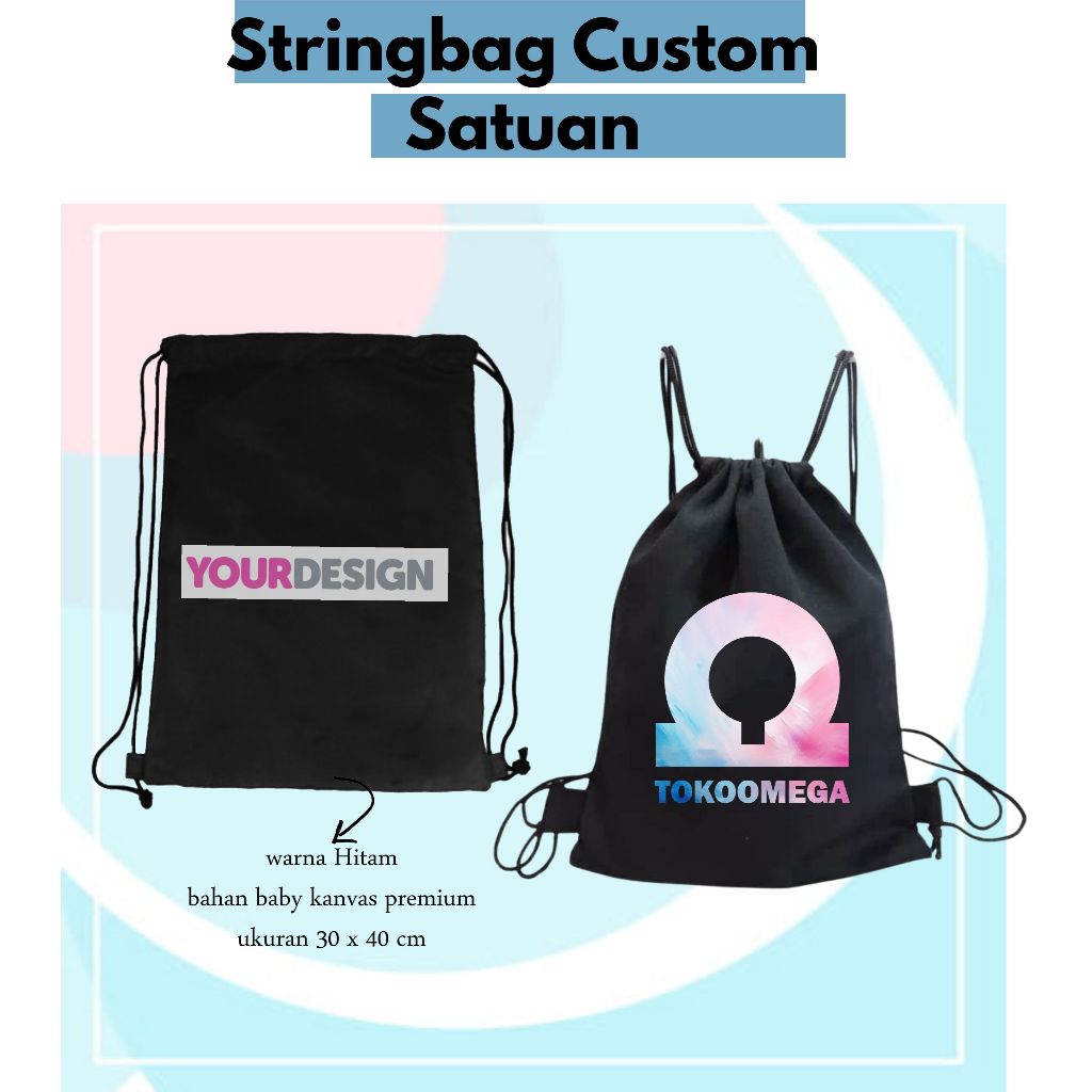STRING BAG KANVAS HITAM CUSTOM SABLON 30 X 40