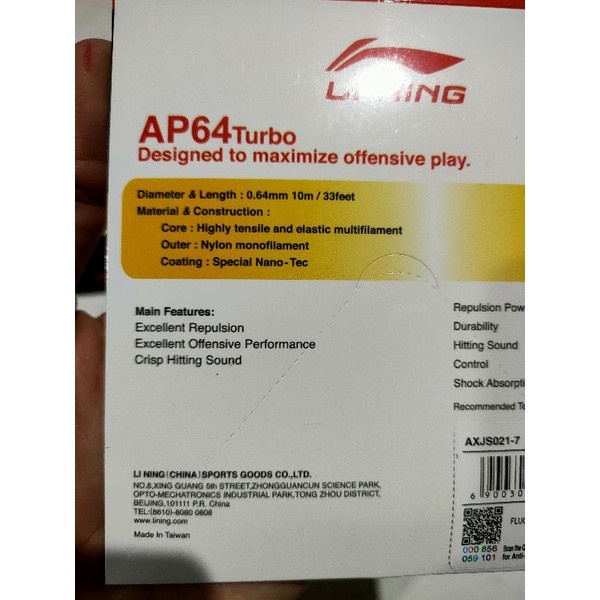 STRING RAKET BADMINTON LINING AP64 TUBO ORIGINAL