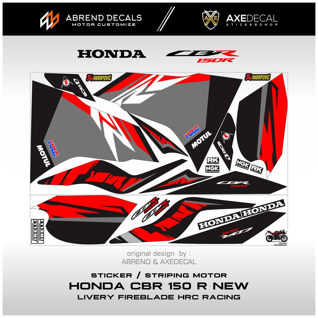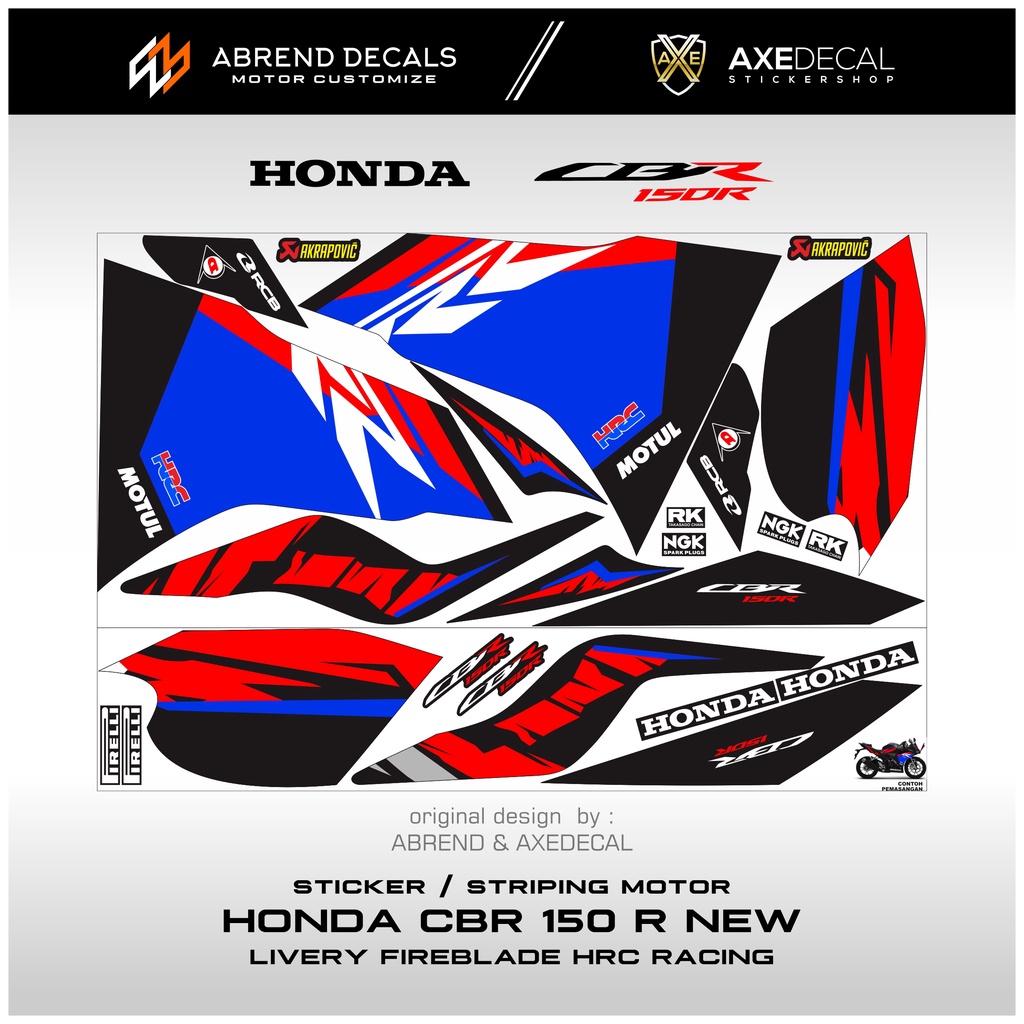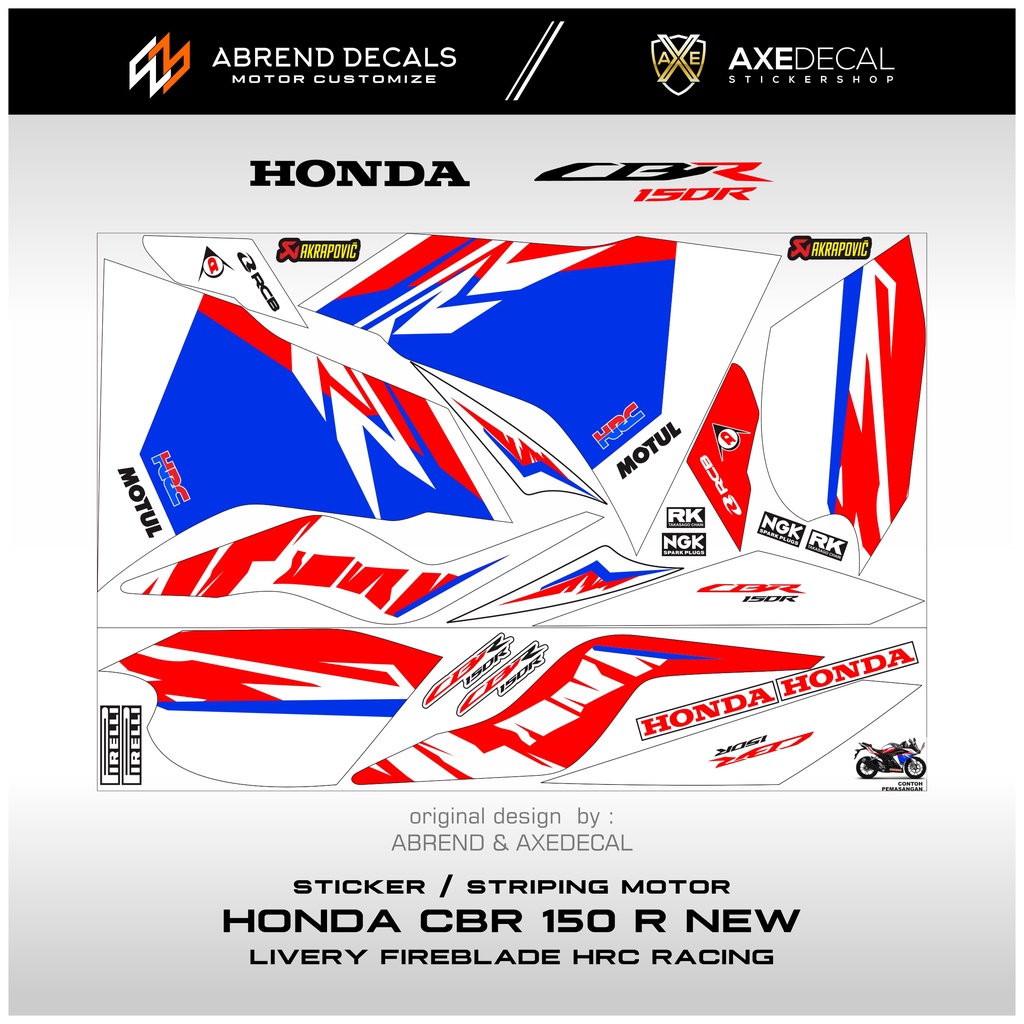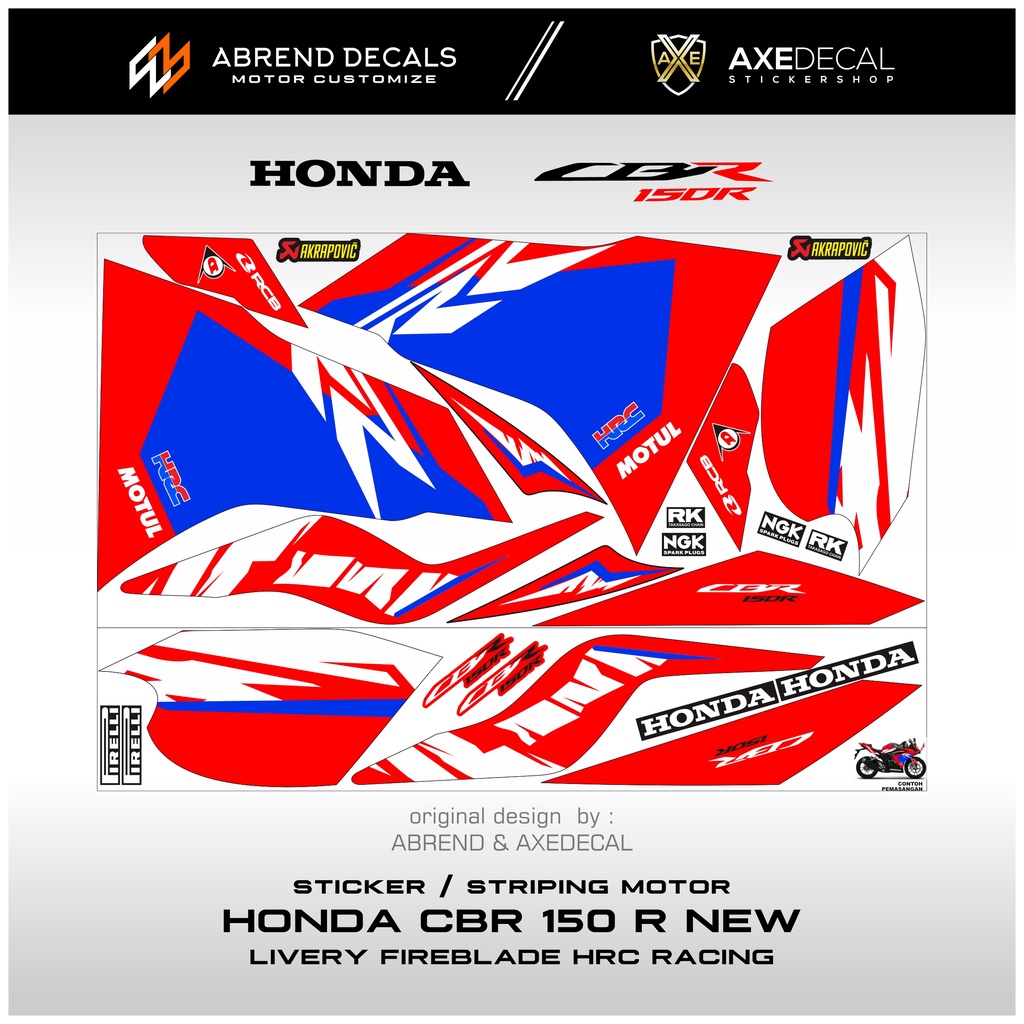 STRIPING CBR 150 NEW LIVERY FIREBLADE HRC RACING / STIKER MOTOR HONDA CBR 150R BARU DESIGN CUSTOM / STOCK DECALS