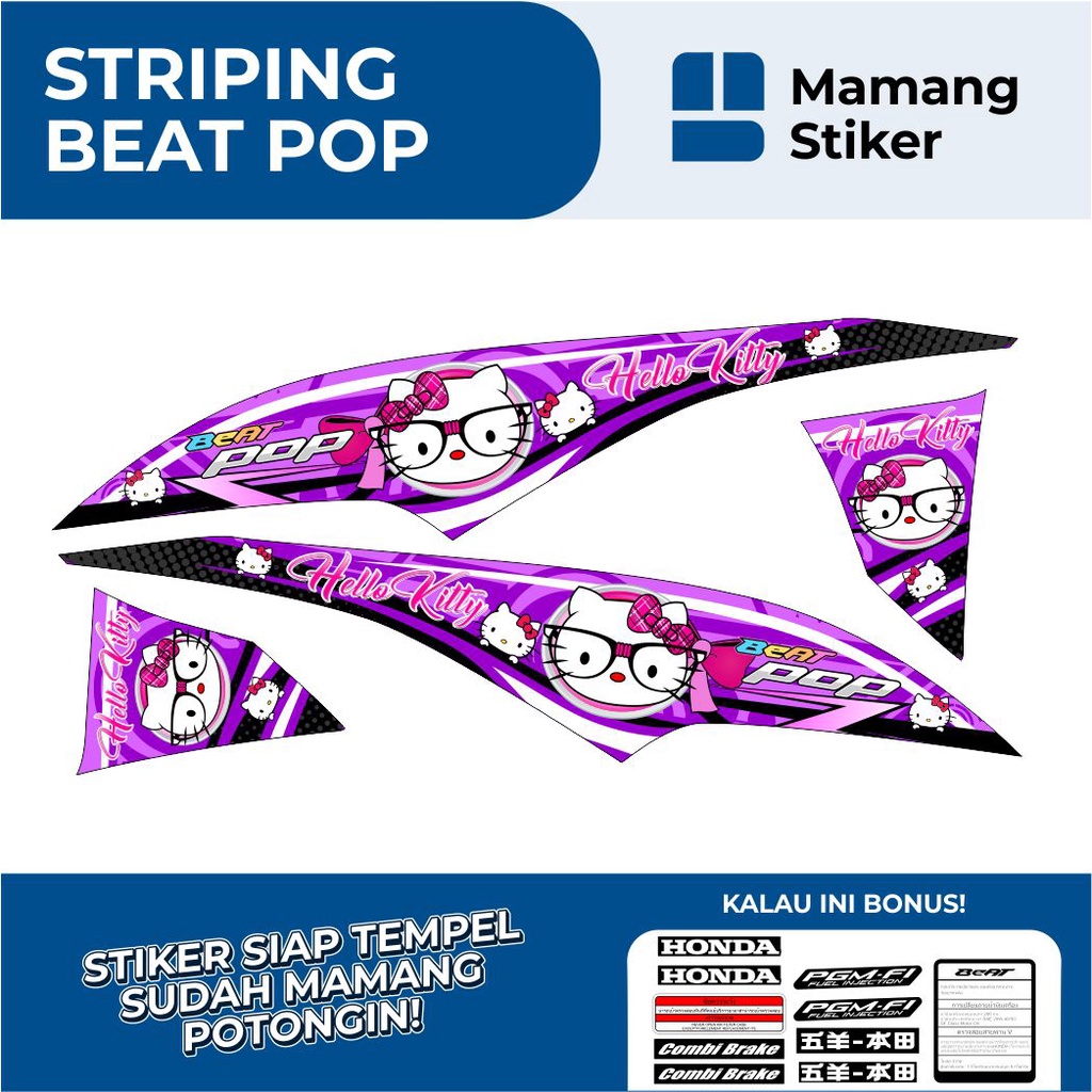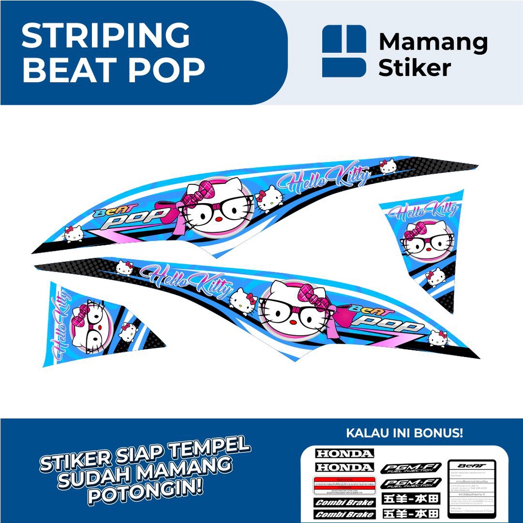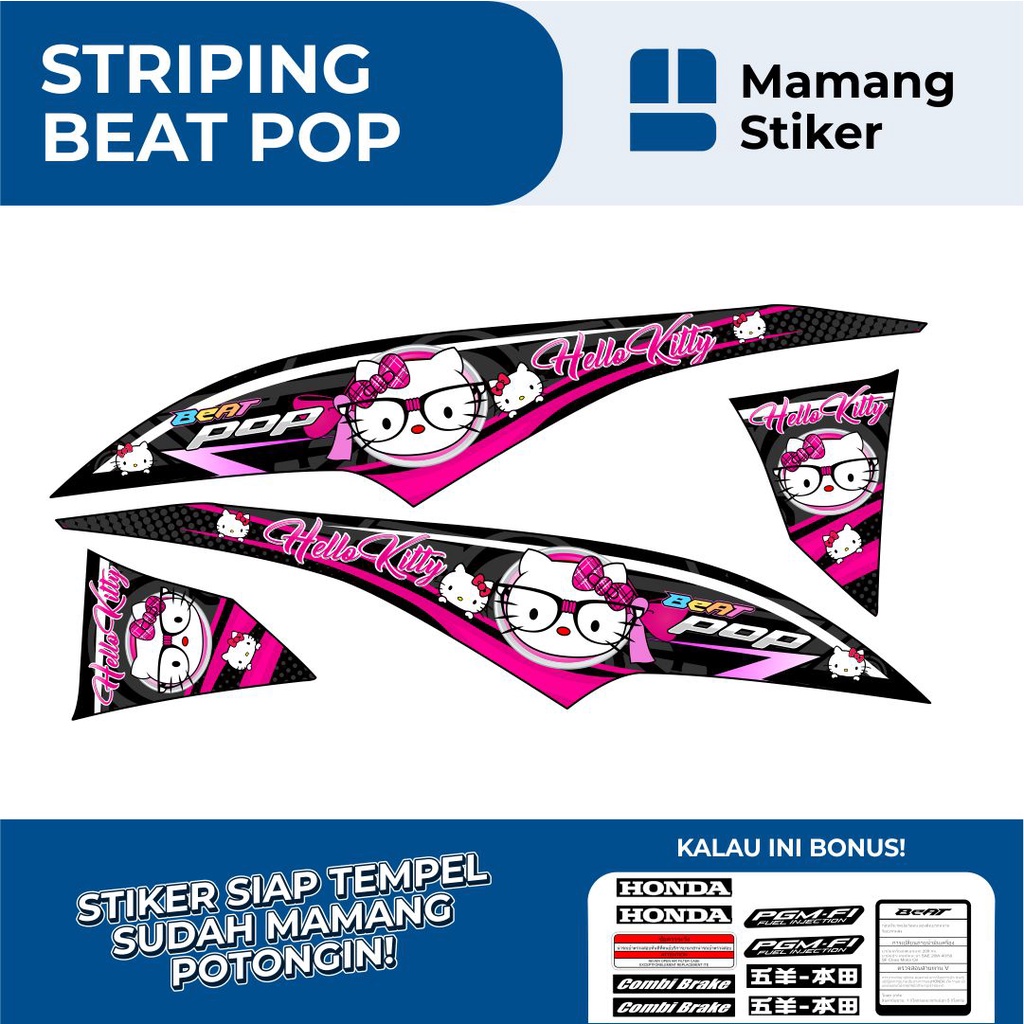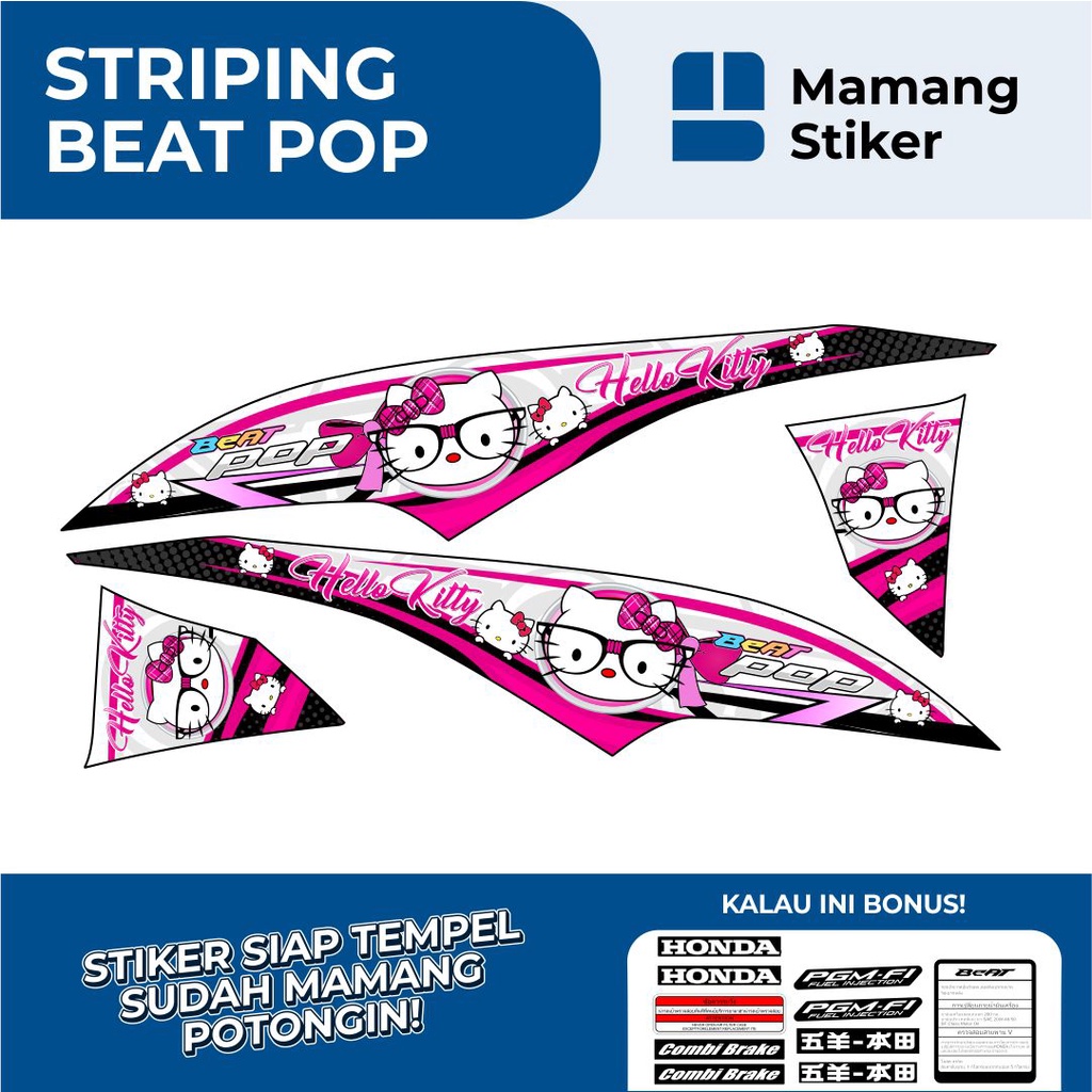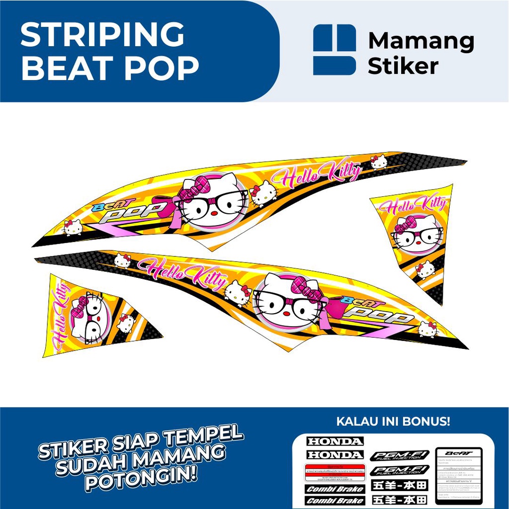 STRIPING HONDA BEAT POP FULL BODY VARIASI 10 HELLO KITTY/STIKER BEAT POP FI ORIGINAL/STICKER BEAT POP RACING KEREN/SIMPEL MINIMALIS ICON THAILOOK GRAFIS/2015 2016 2017 2018/LIS LIST MERAH PUTIH BIRU HITAM GOLD HIJAU KUNING