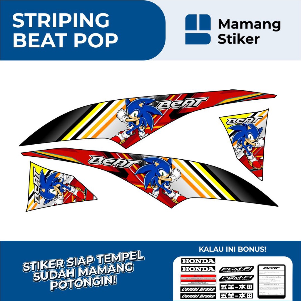 STRIPING HONDA BEAT POP FULL BODY VARIASI 6 SONIC/STIKER BEAT POP FI ORIGINAL/STICKER BEAT POP RACING KEREN/SIMPEL MINIMALIS ICON THAILOOK GRAFIS/2015 2016 2017 2018/LIS LIST MERAH PUTIH BIRU HITAM GOLD HIJAU KUNING