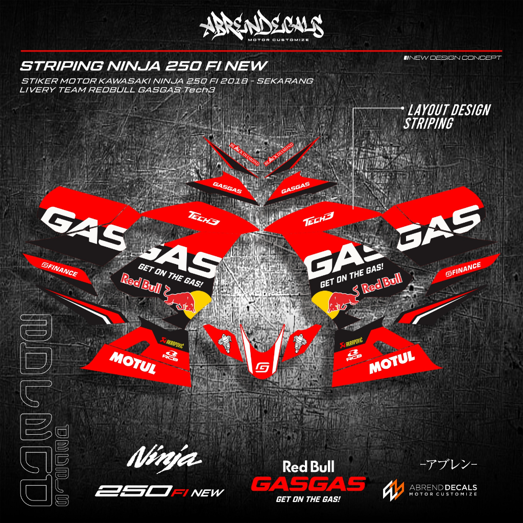 STRIPING NINJA FI 2018 - SEKARANG LIVERY TEAM GAS GAS TECH 3 MOTOR GP 2024 / STIKER MOTOR KAWASAKI NINJA 250 FI NEW DESIGN CUSTOM / STOCK DECAL