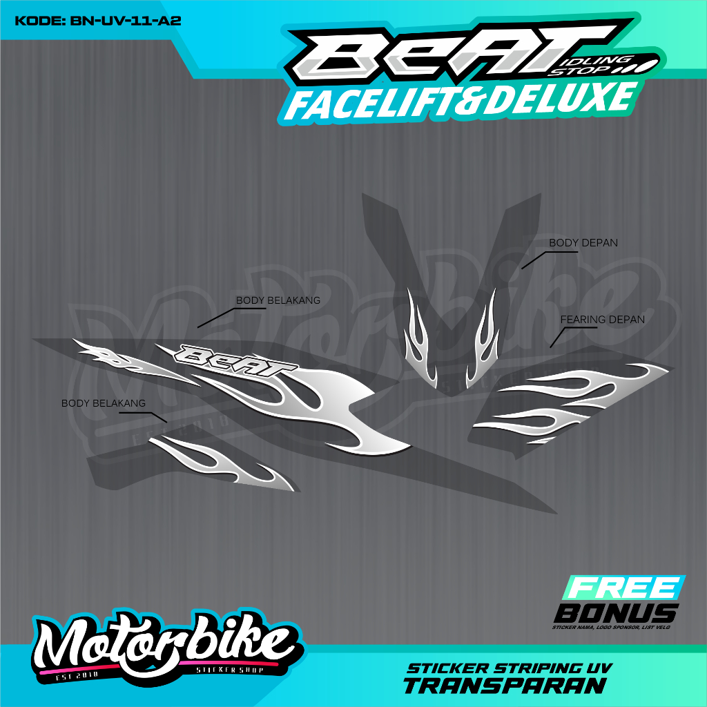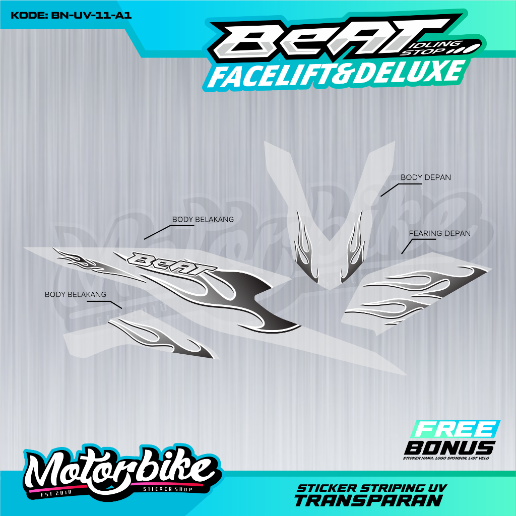 STRIPING UV BENING VARIASI MOTOR BEAT NEW DELUXE TERBARU MOTIF API SIMPEL VIRAL - BN-UV