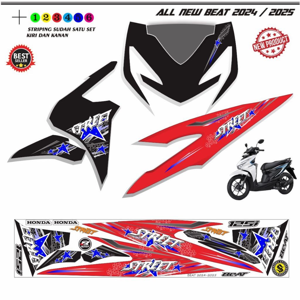 STRIPING VARIASI STIKER MOTOR HONDA BEAT TERBARU DELUXE 2024 DAN 2025 SETIKER