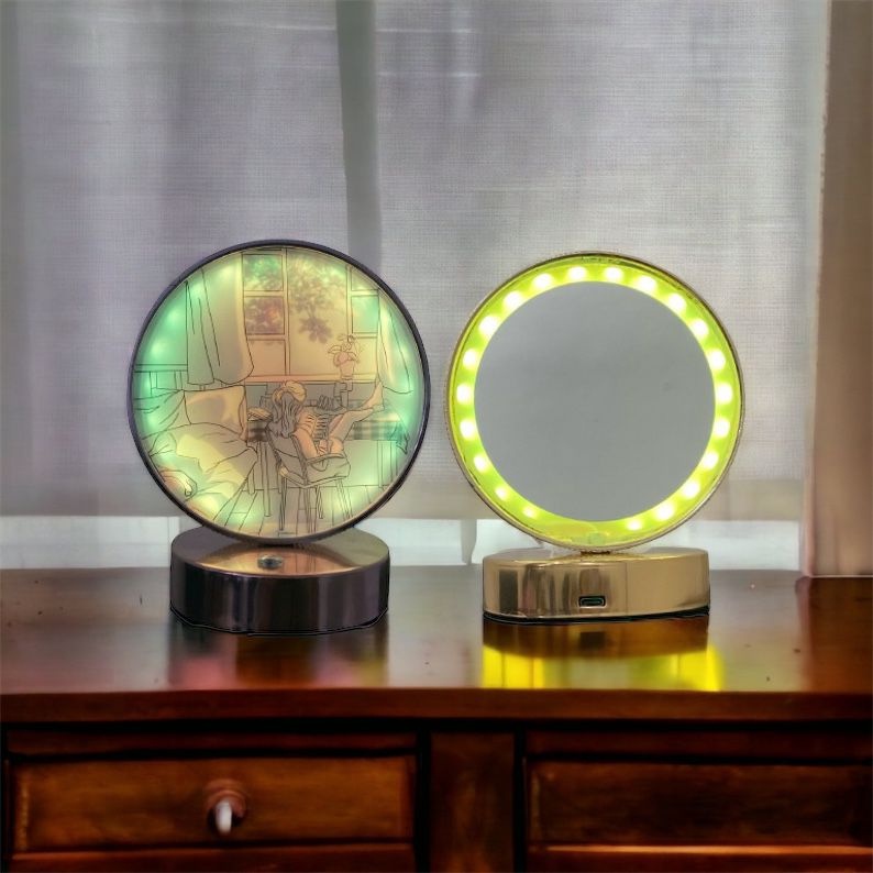 STT Lampu Warna Cermin LED Bulat Lukisan Cahaya Ornamen Meja Karkter Estetik Lampu Lentera Malam Lukisan Sinar Akrilik Dekorasi Bayangan Bingkai Pesta Musim untuk Rumah