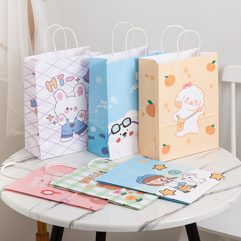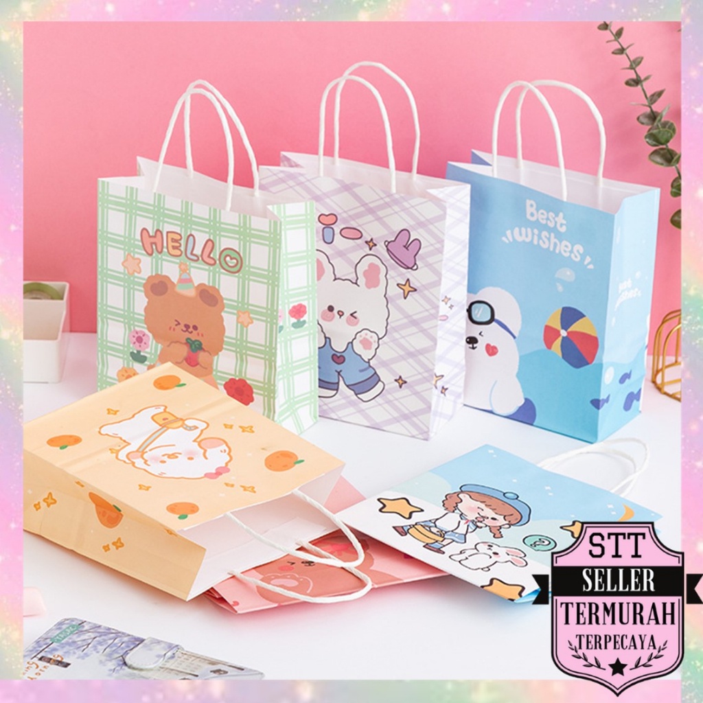 STT Paperbag Karakter Kartun Beruang Lucu Goodie Bag Motif Rabbit & Bear Tas Jinjing Serbaguna Bingkisan Hadiah Hampers Ulang Tahun Anak Kotak Souvenir Kantong Tentengan Bingkisan Paper Bag Kertas Mini Lucu Aesthetic