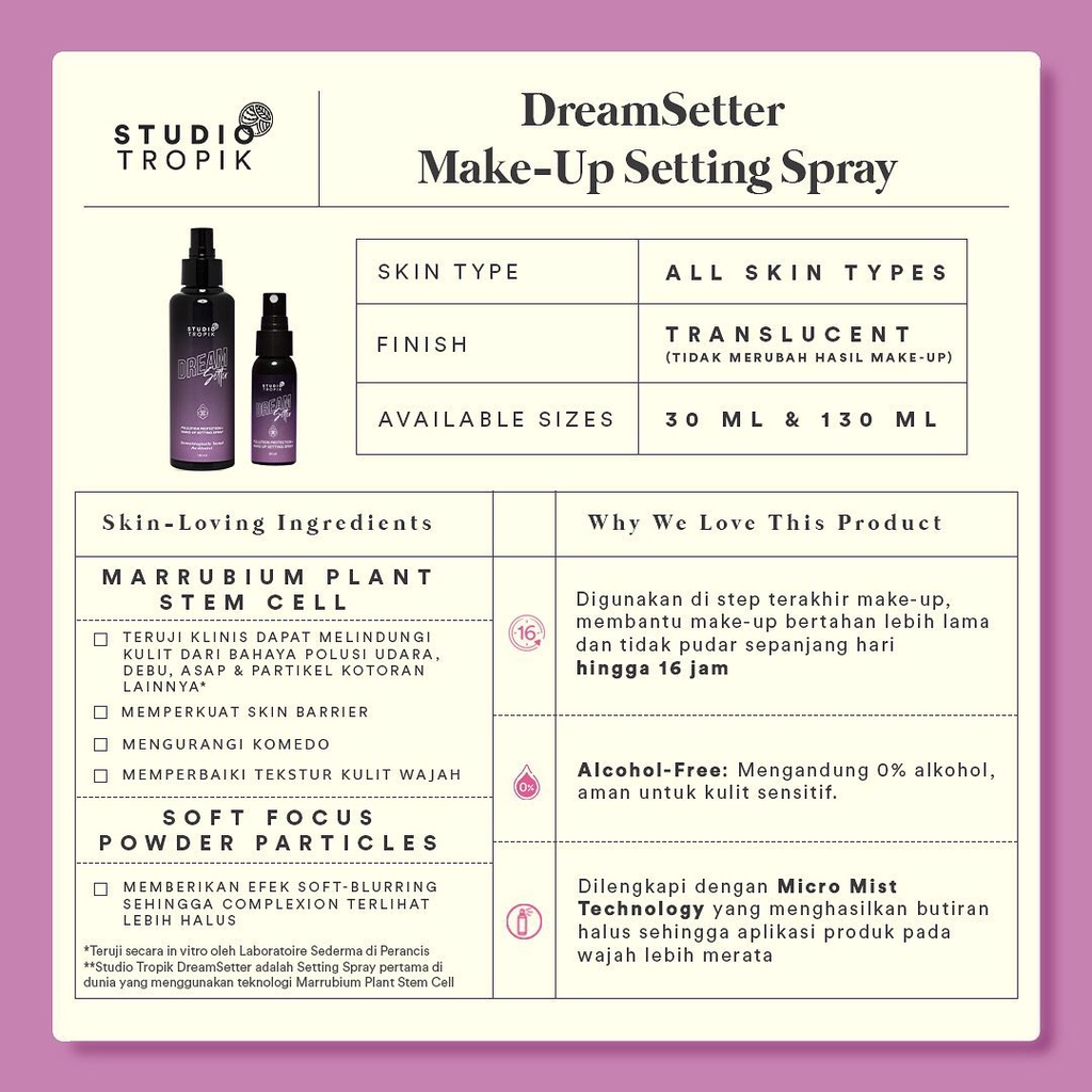STUDIO TROPIK DREAM SETTER MAKEUP SETTING SPRAY, DREAMSETTER GLOWY MAKEUP SETTING SPRAY,STUDIO TROPIK SETTING SPRAY