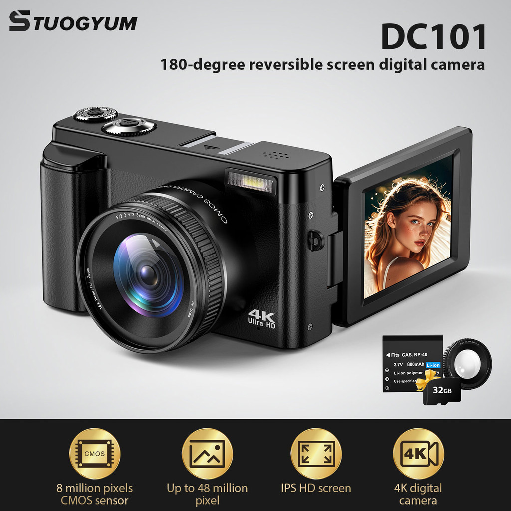 STUOGYUM 4K Vlogging Camera,48MP gital Camera For Photography With Autofocus 3.0 Inch Touch Screen,180 Degree Flip Screen