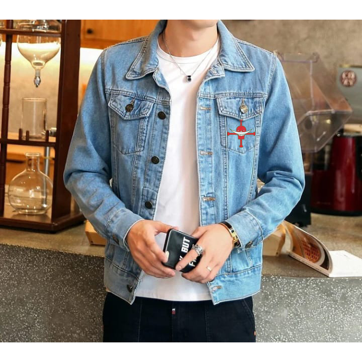 STY1 JAKET JEANS DENIM MOTIF DESIGN ONE PIECE SHIROHIGE EDWARD NEWGATE / JAKET DILAN / JAKET ONE PIECE / JAKET DENIM / SHIROHIGE PIRATES
