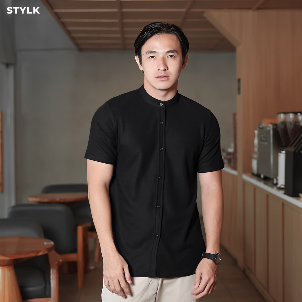 STYLELAKI - Kemeja Lapique Casual Pria Lengan Pendek Slim Fit | Anti Kusut, Adem & Nyaman - Mocca