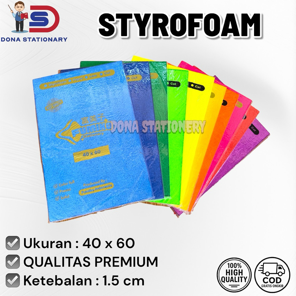 STYROFOAM WARNA-WARNI 40x60 / PAPAN STYROFOAM 1,5 cm / PAPAN GABUS STYROFOAM WARNA