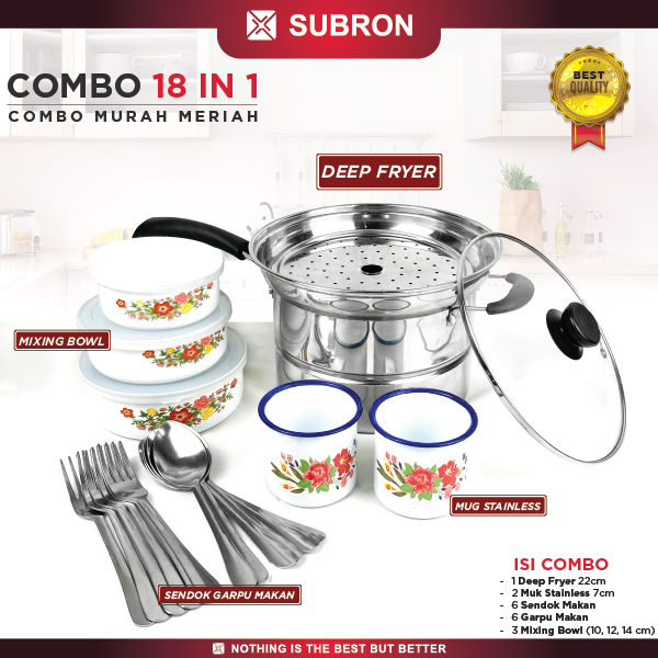 SUBRON PAKET COMBO HEMAT 18IN1 Panci Deep Frying Mangkuk Enamel Muk Stainless Tutup Set Sendok Garpu Alat Makan Masak