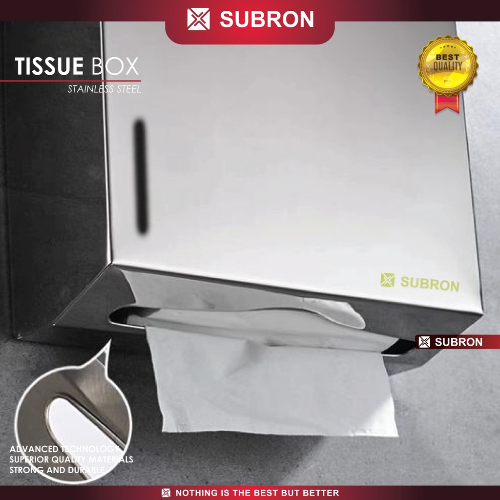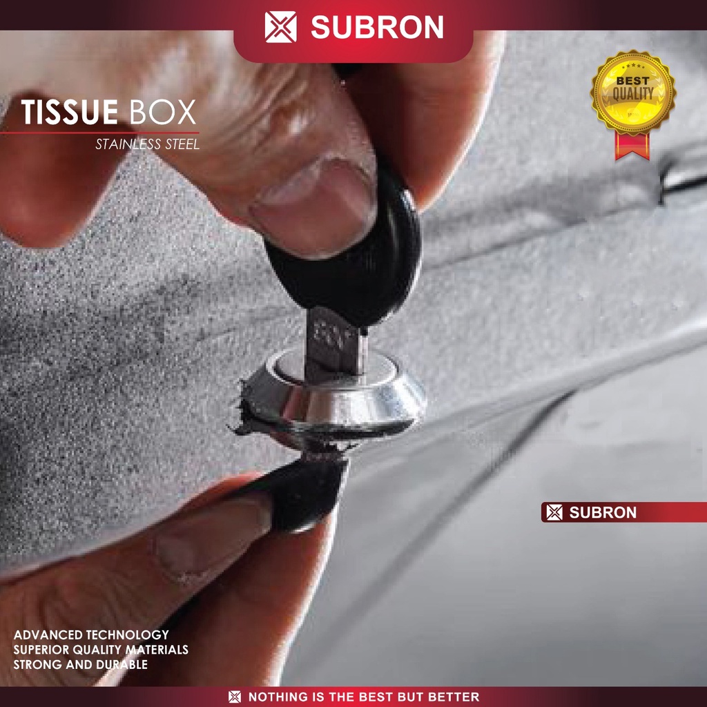 SUBRON Tissue Box Stainless Kotak Besar Kunci Tempat Wadah Tisu Tembok Dinding