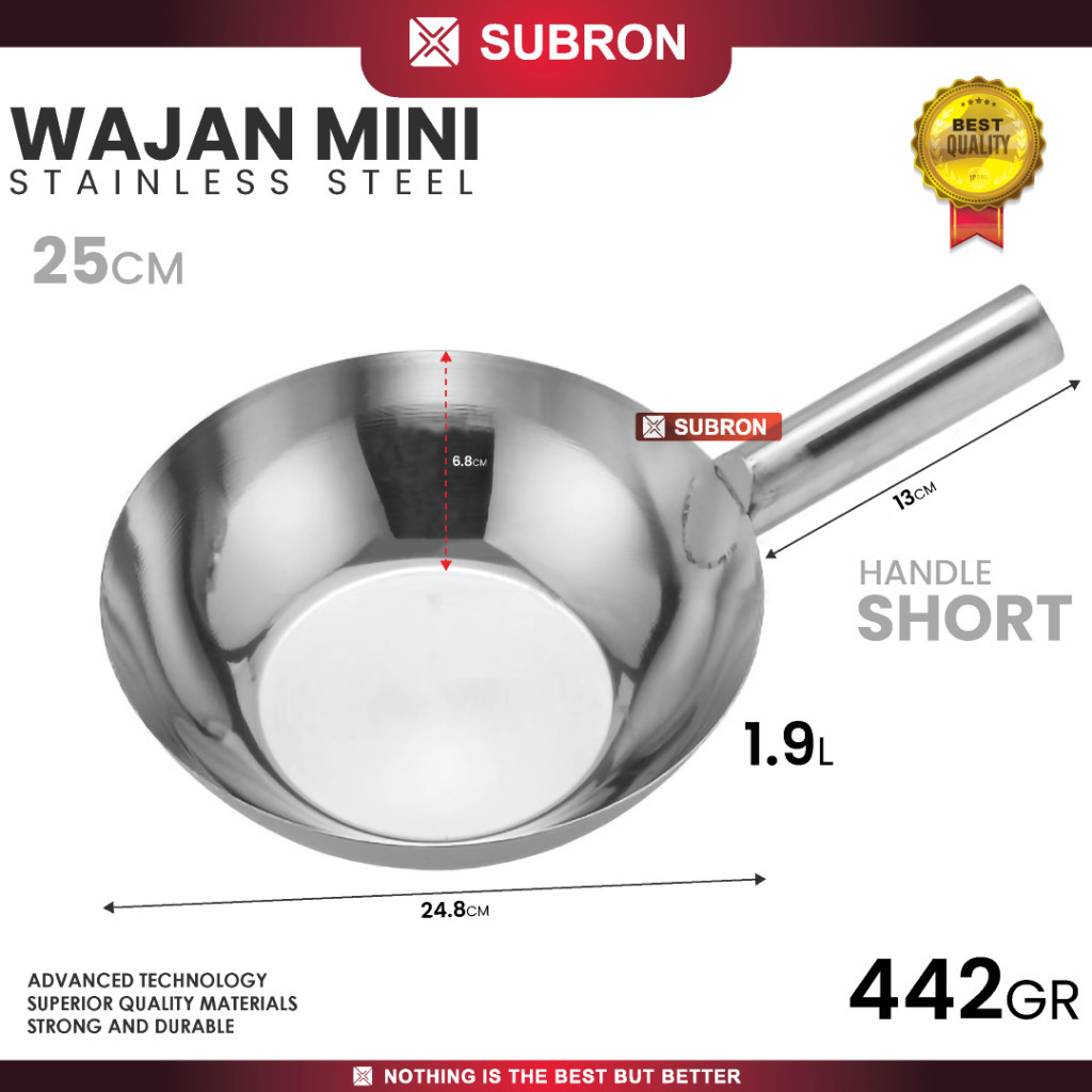 SUBRON Wajan Mini Tebal Handle Short Foodgrade Wok Kuali Penggorengan Stainless