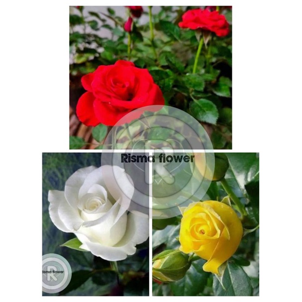 SUDAH BERBUNGA 3 TANAMAN HIAS POHON BUNGA MAWAR MERAH-PUTIH-KUNING / TANAMAN HIAS BUNGA MAWAR