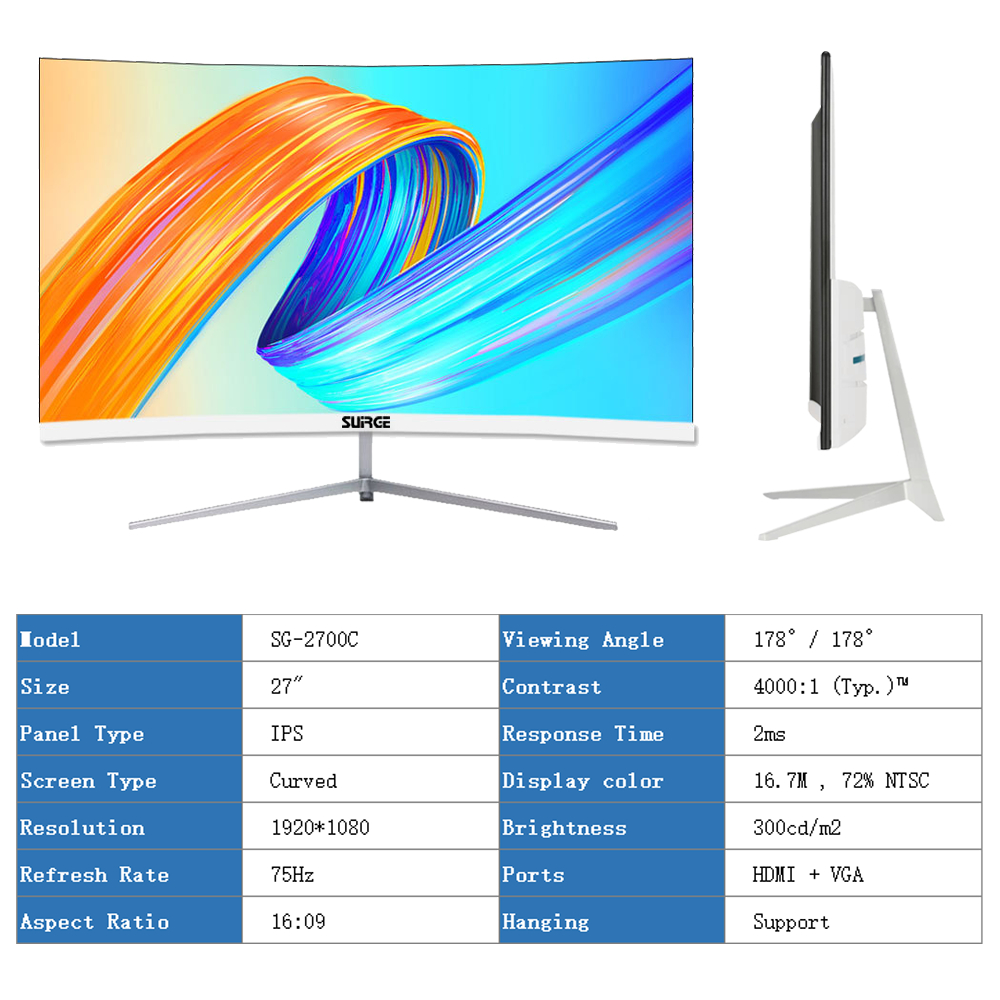 SUIRGE Gaming Monitor 32" 3000R Curved 1080P HD No Border IPS Panel Monitor