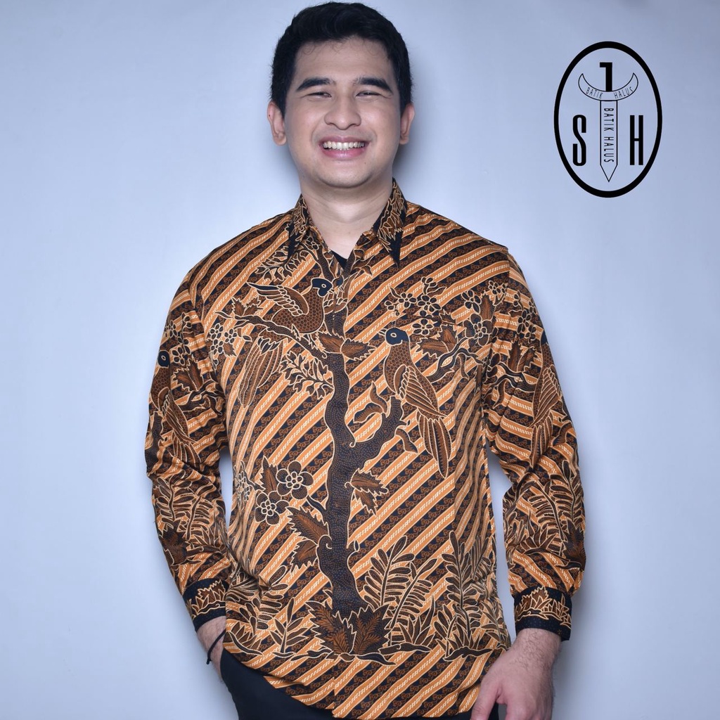 SULTAN HADI / BAJU BATIK / BATIK LENGAN PANJANG / MODEL BAJU BATIK TERBARU / KEMEJA BATIK / ATASAN PRIA / BATIK MEWAH / BAJU BATIK SILKY LERENG KUNING