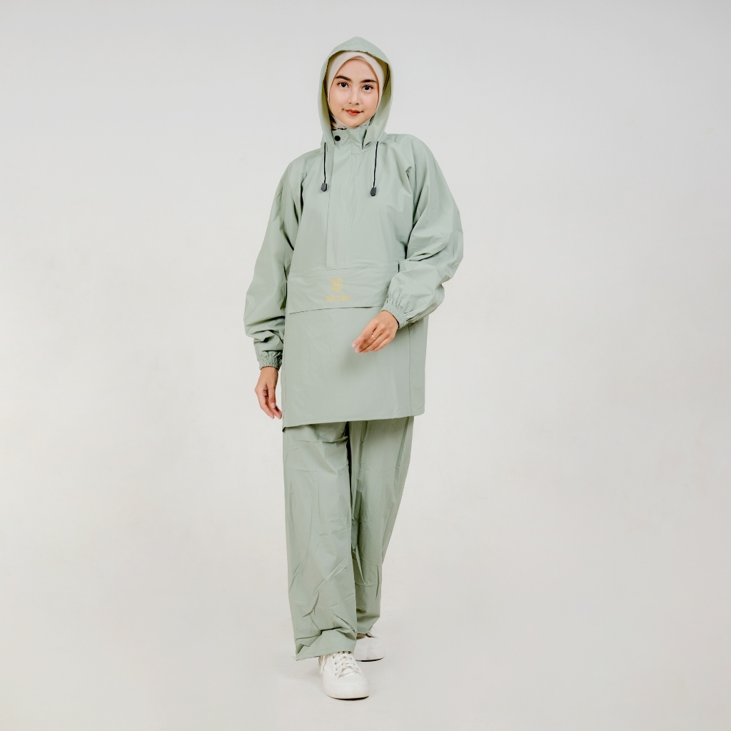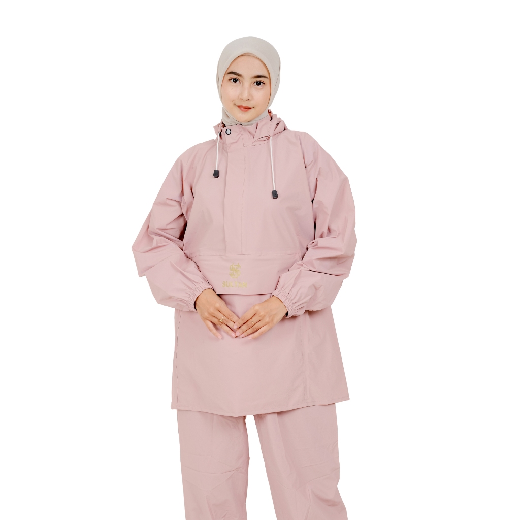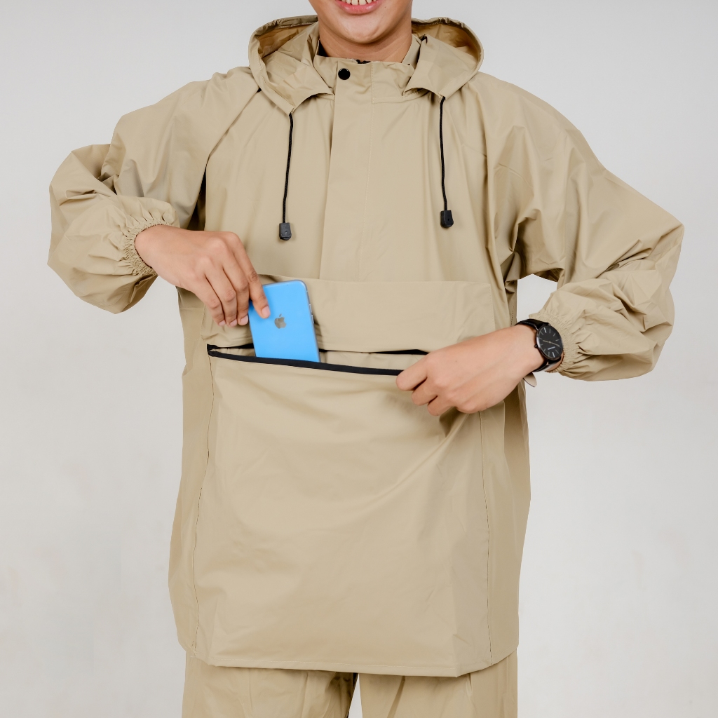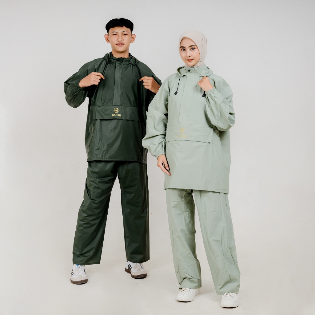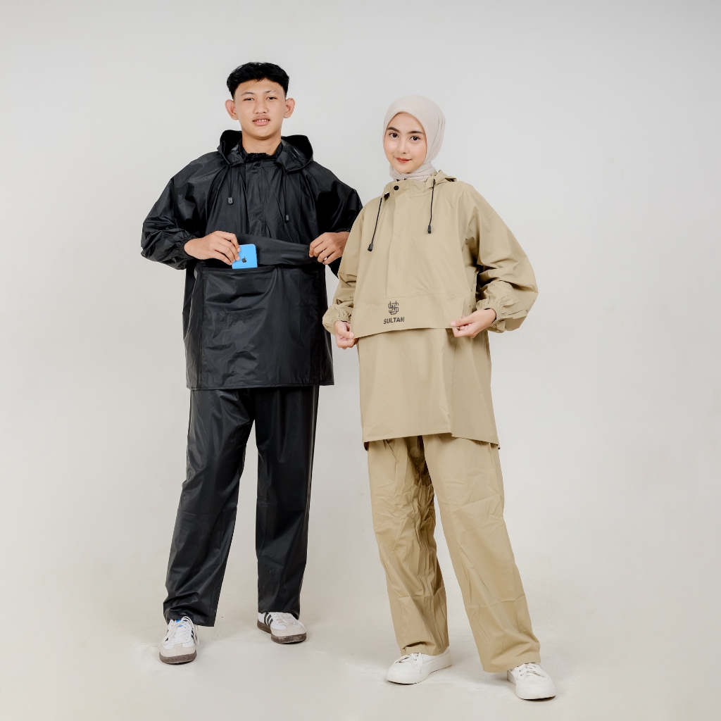 SULTAN Jas Hujan Kanguru Pria Wanita Setelan Baju + Celana Dewasa Cream