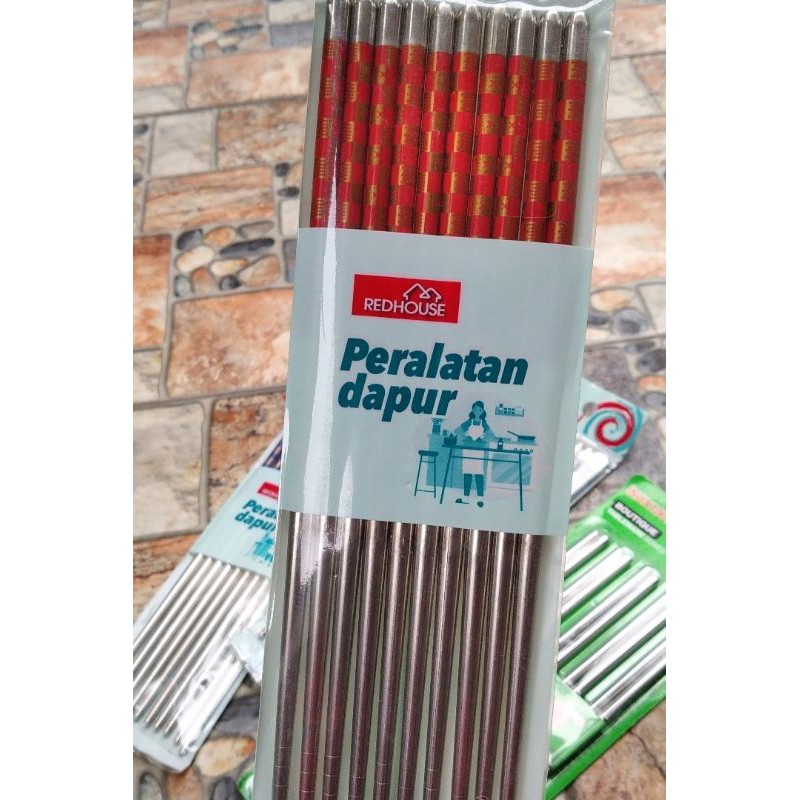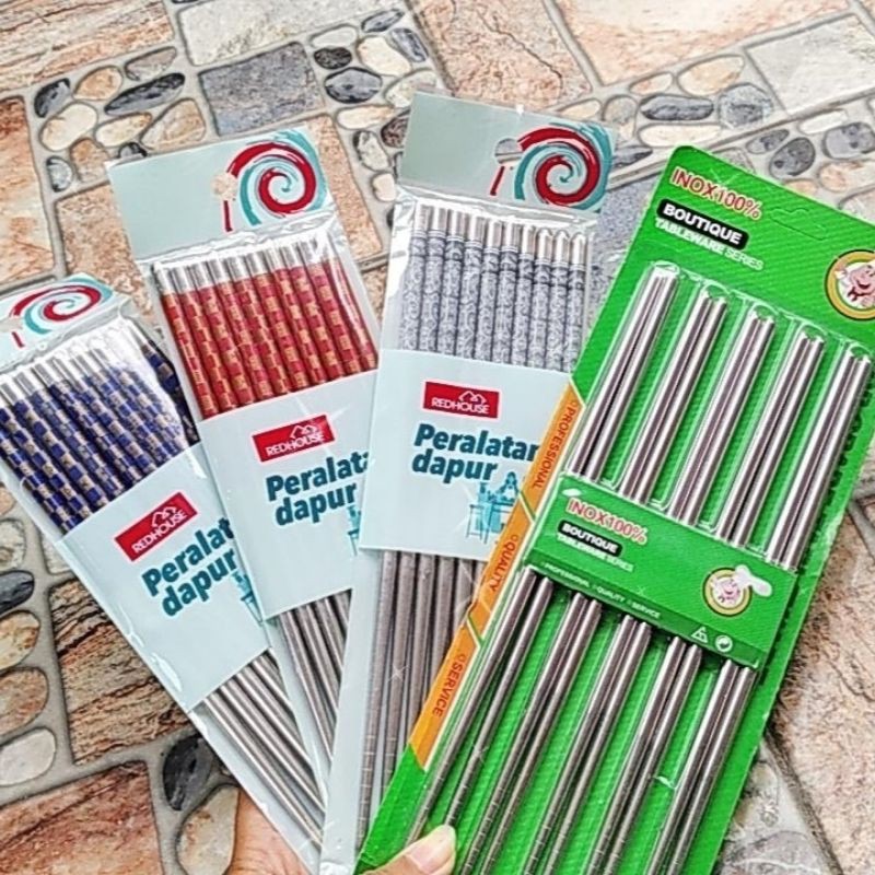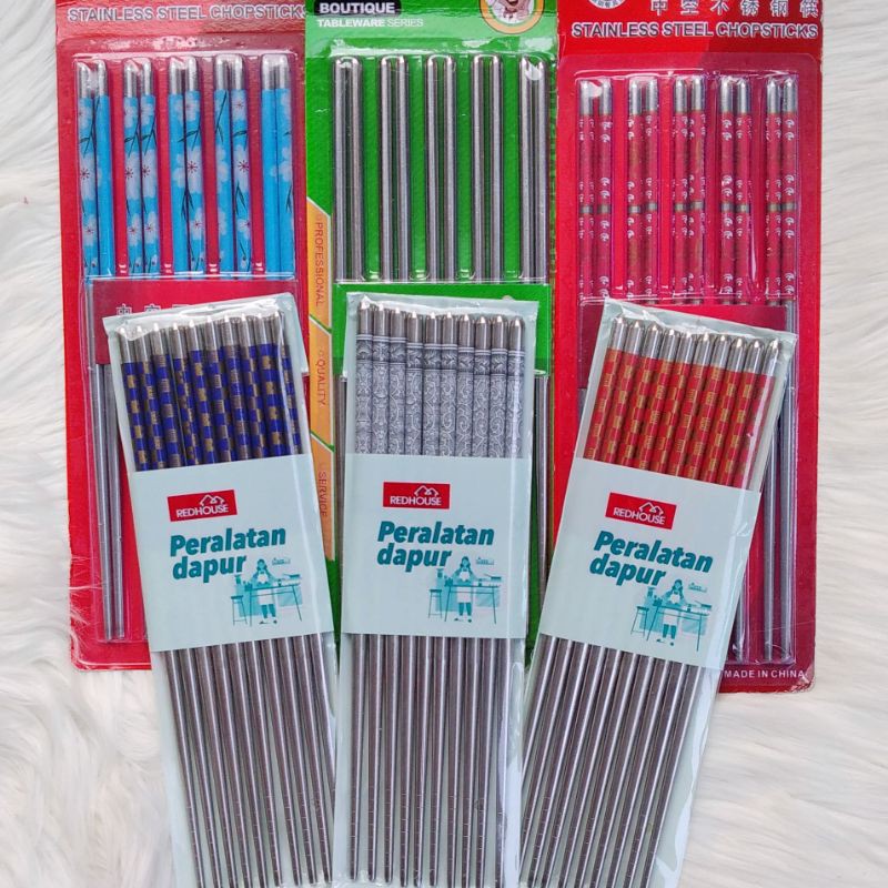 SUMPIT STAINLESS STEEL POLOS & MOTIF KOREA JEPANG CHINA 22CM CHOPSTICKS