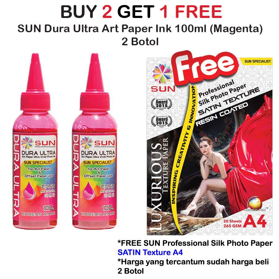 SUN Tinta Epson DURA ULTRA INK 100 ml MAGENTA 2 botol Free Silk Satin A4