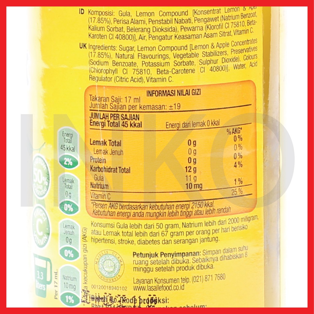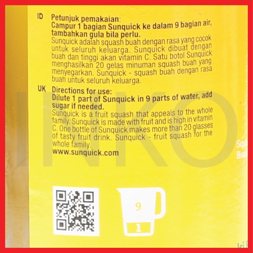 SUNQUICK LEMON SQUASH BUAH LEMON TINGGI VITAMIN C 330ML