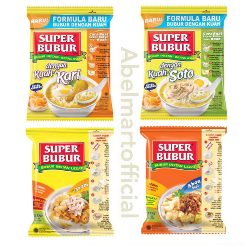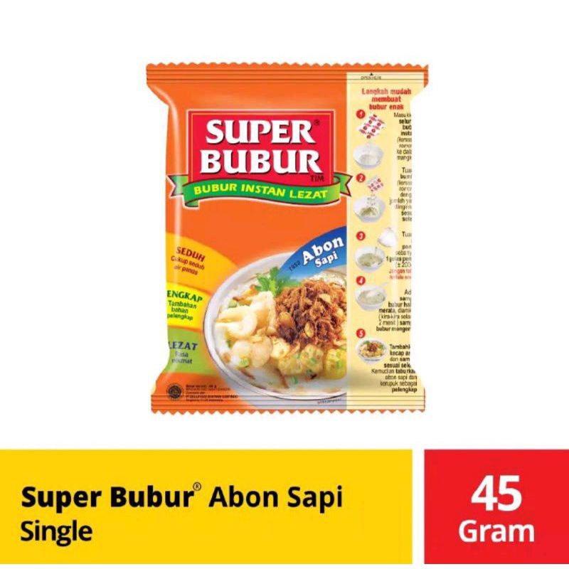 SUPER BUBUR INSTAN SINGLE / SUPER BUBUR INSTAN KEMASAN SATUAN / SUPER BUBUR RASA AYAM / SUPER BUBUR ABON SAPI / SUPER BUBUR KUAH SOTO / SUPER BUBUR KUAH KARI / BUBUR INSTAN / BUBUR AYAM / BUBUR AYAM KEMASAN / BUBUR ENAK