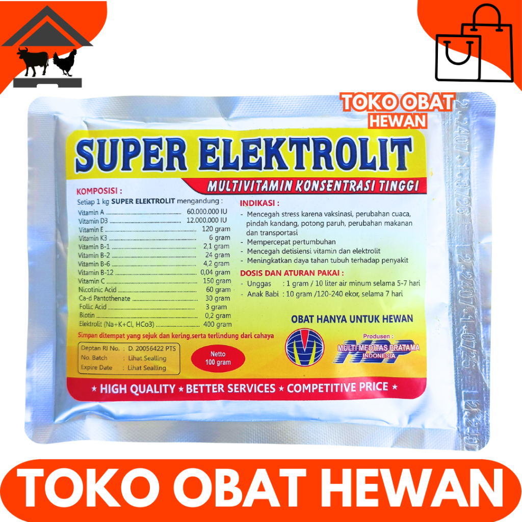 SUPER ELEKTROLIT 100 GRAM M2P - Multivitamin Konsentrasi Tinggi Unggas Ayam Bebek Puyuh Lik Rhodivit