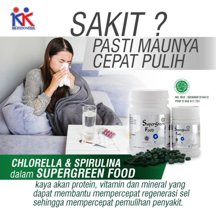 SUPLEMEN KESEHATAN SUPERGREEN FOOD 150 Tabs Chlorella Spirulina Alami cocok untuk masalah pencernaan bahan alami suplemen padat gizi