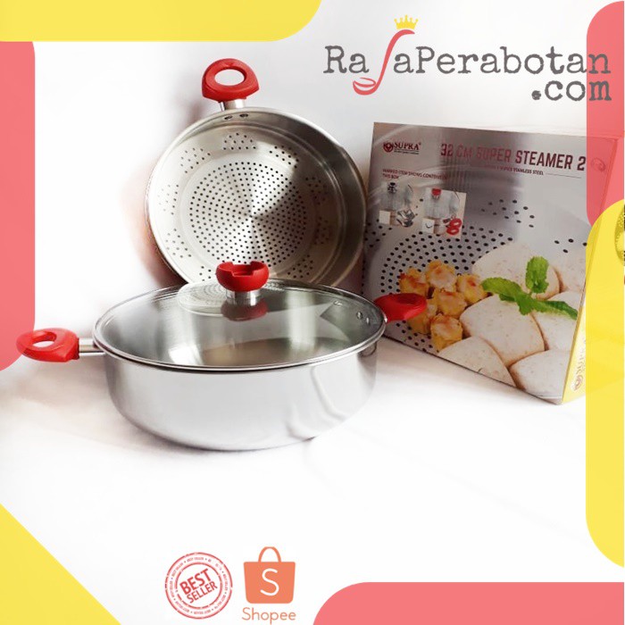 SUPRA Steamer 2 Susun 32cm SUPRA Stainless / Panci Kukus 2 Susun Original