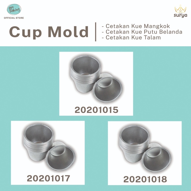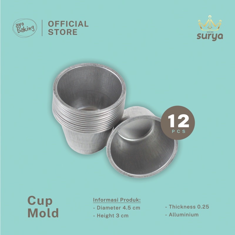 SURYA Cetakan Kue Mangkok | Cetakan Putu Belanda | Cetakan Kue Talam | Cetakan Muffin Alluminium (12pcs)