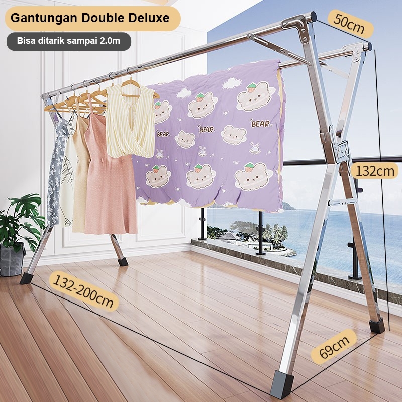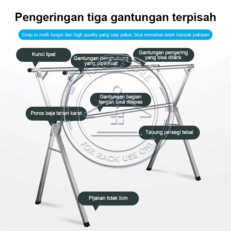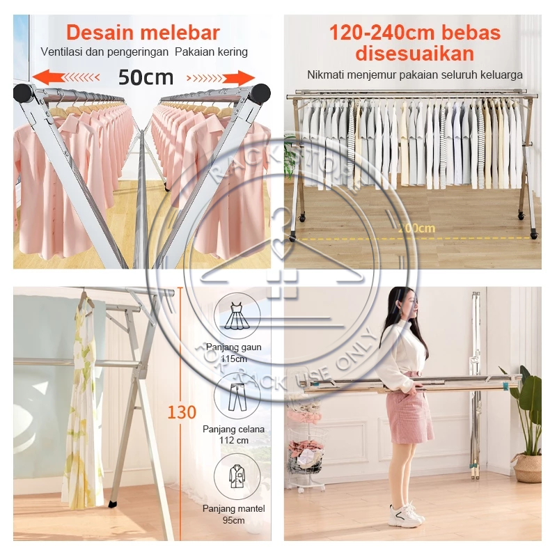 SUS 304 Jemuran Baju Lipat Jemuran Pakaian Stainless Steel Jemuran Hanger Portable