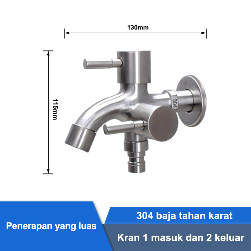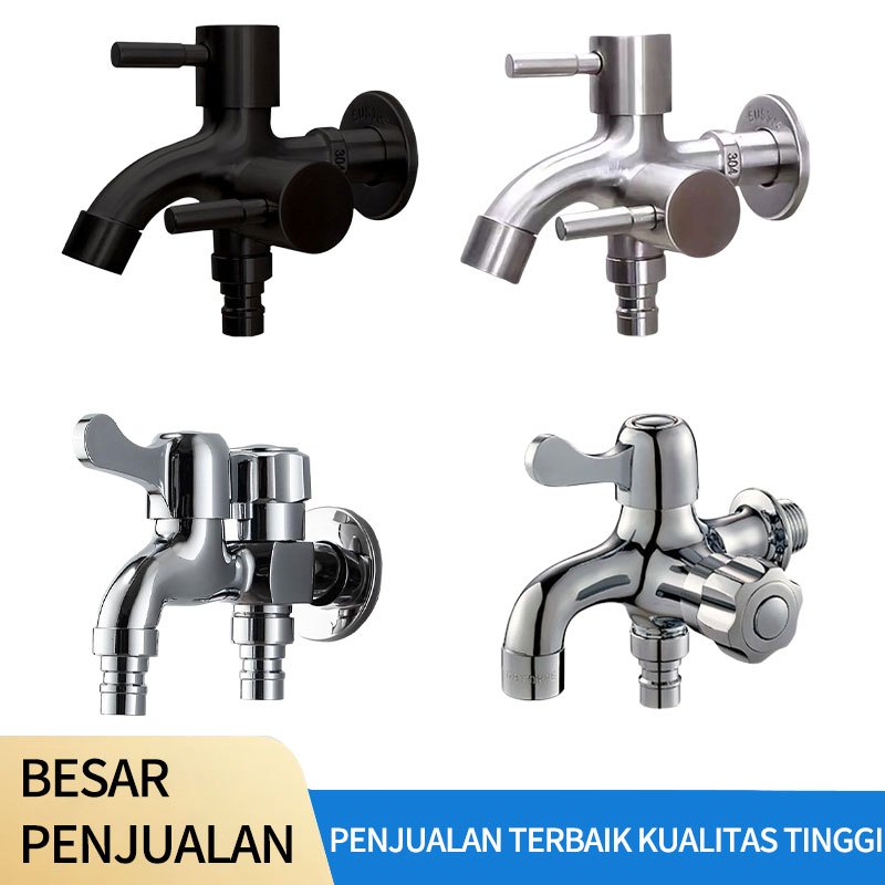 SUS 304 Keran Cabang Keran Outlet Ganda Keran Dinding Dari Baja Tahan Karat Kamar Mandi Tersedia