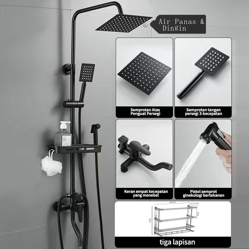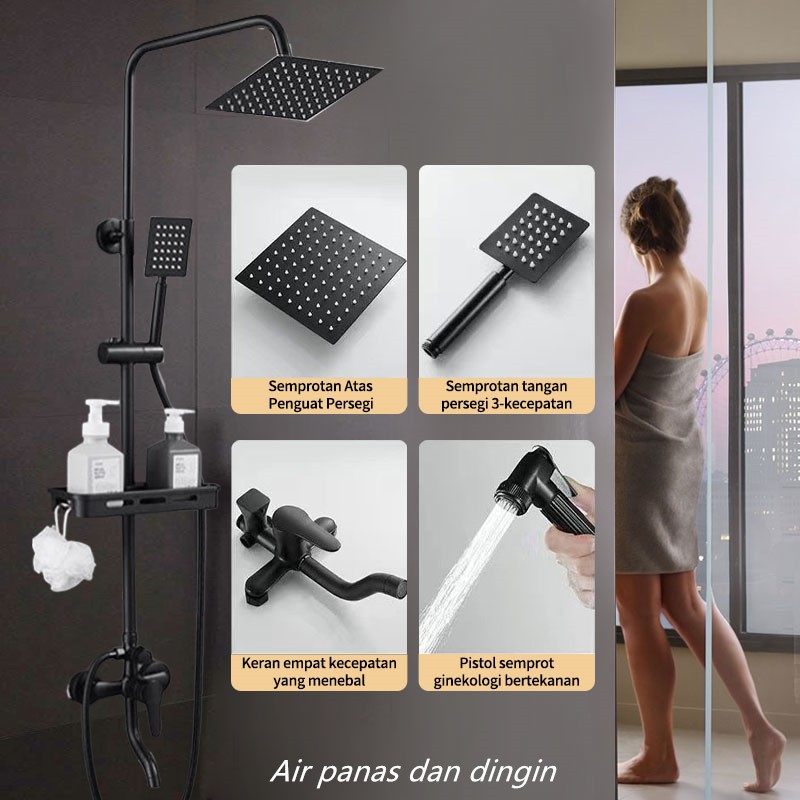 SUS304 Shower Set Paket Lengkap Shower Kotak/Stainless Shower dan Bulat Kamar Mandi Rain Shower + Keran Cabang